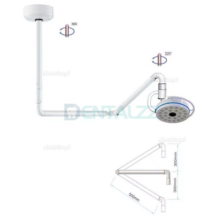 Ta lampa LED doustna jest montowana na suficie, promień ruchu 180 stopni, 5500K, odległość robocza 700mm, głowica lampy 30CM, duży panel lampy, wielofunkcyjna, wykwintna, o wysokiej jasności.