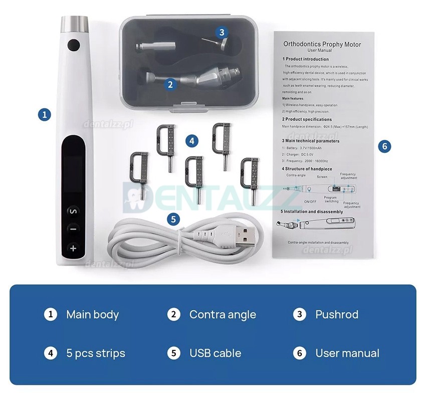 Elektryczny zestaw ortodontyczny do redukcji międzyzębowej IPR z 5 paskami