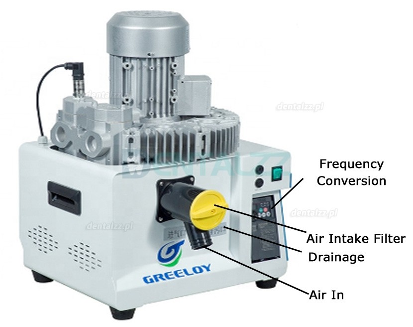 Jedna napędzająca od trzech do pięciu dentystycznych pomp próżniowych, może być używana do 4-5 foteli dentystycznych. Wyposażony jest w silnik konwersji częstotliwości.